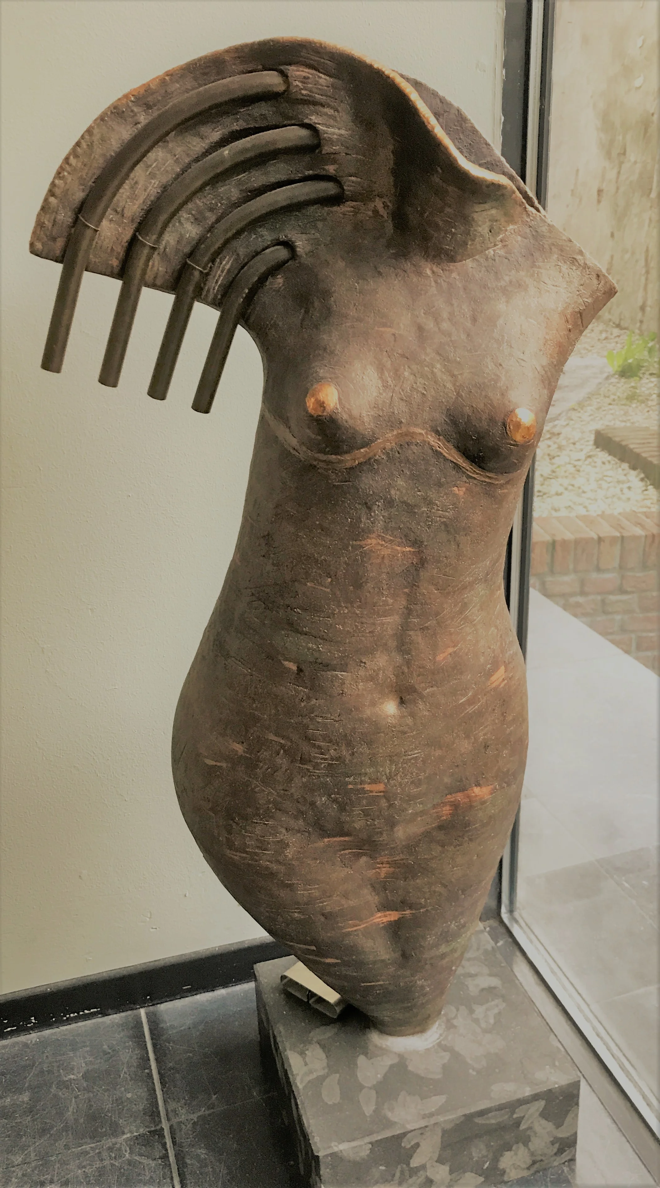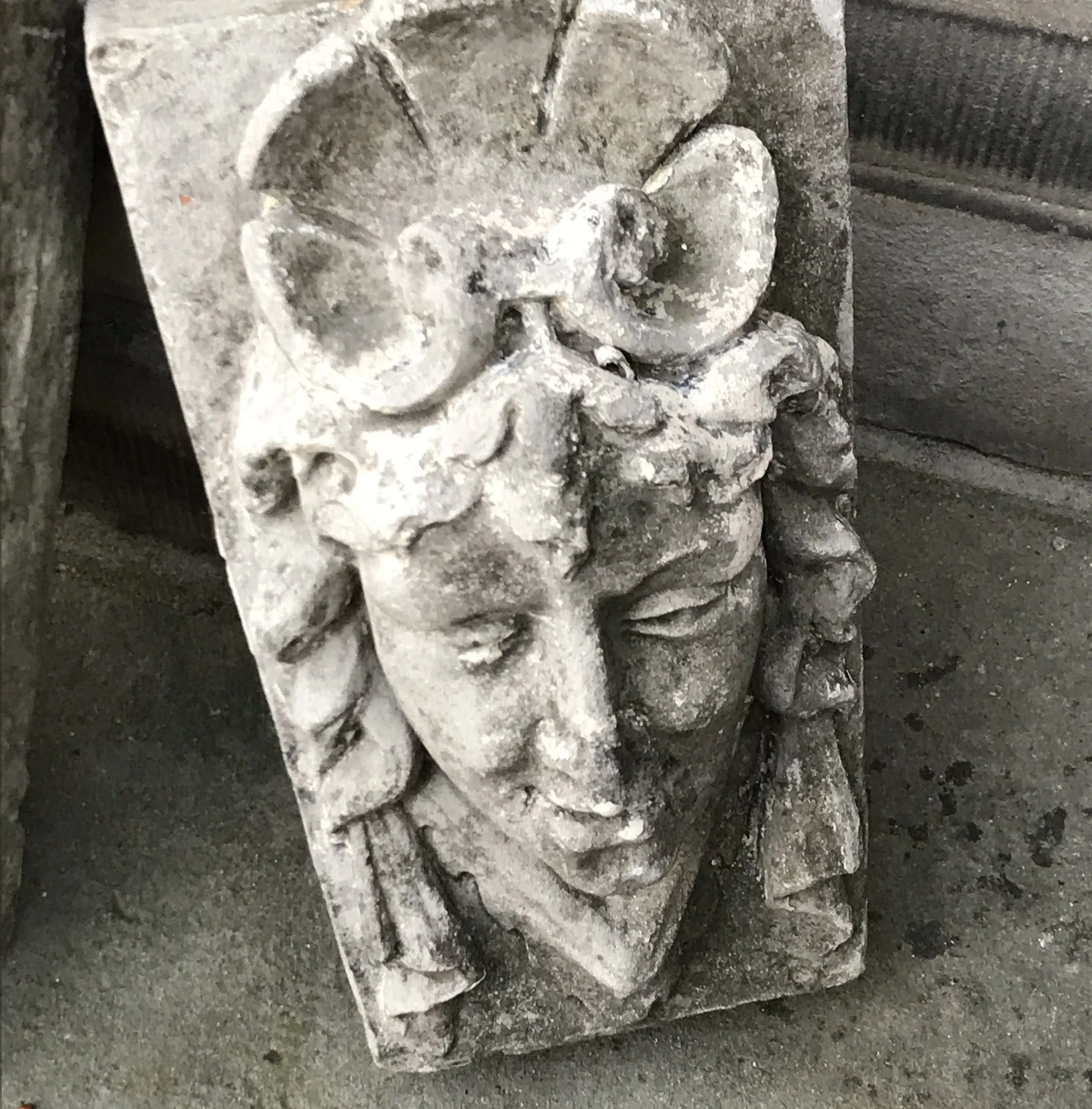 This lifesize stone Great Dane was chained to the wall.